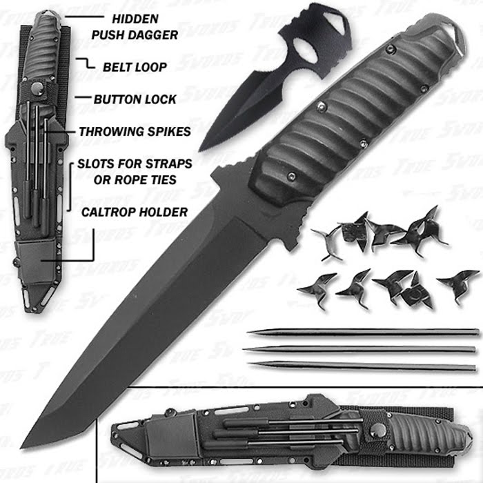 You couldn't name something with 4 cooler words: the Ninja Tanto Battle Package. For only $19.99, it comes with a hidden dagger, throwing spikes, and caltrops. A must-have for any stealthy assassin.